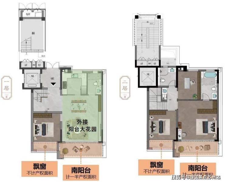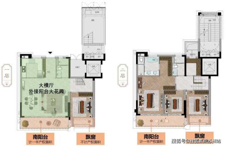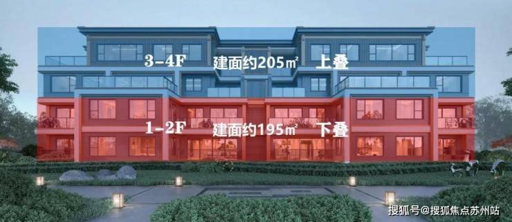 对比北地块,南地块建面约150/155㎡的上叠,打破叠墅难有的大尺度面宽,将原来的客厅升级为横厅,采光通风效果更佳,并且二层原露台空间变为卧室,更加实用,适合多口之家。