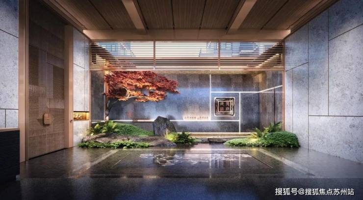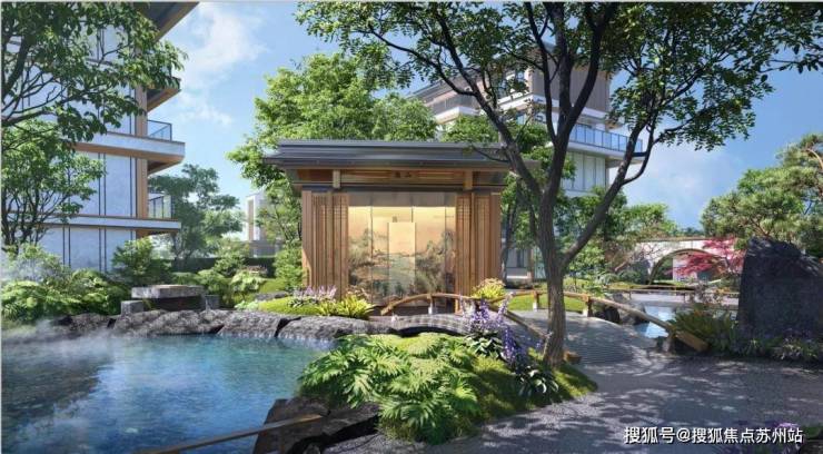 景观方面,大量采用朴拙的原生石材与精致的金属材质相结合,营造古朴与雅致融合为一的意韵。同时,石畔流泉细语,庭院幽深为邻,松隙小径回绕……营造一种隐世又不离烟火气的中式禅境。