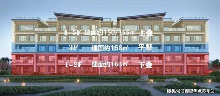 ❖第二种5F墅:1-2F是下叠,3F是平墅,4-5F是上叠,一线临湖,前无遮挡,视野十分开阔,南地块也仅有一栋。