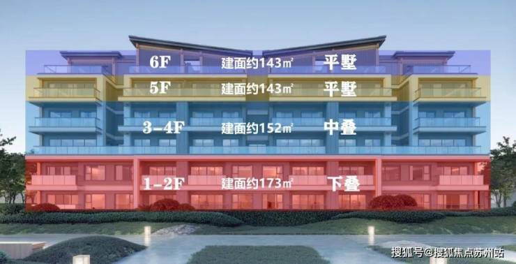 ❖第四种6F墅:靠近社区外围的下中叠各两层,5F和6F做成平墅,全层都能享受到别墅般的生活。